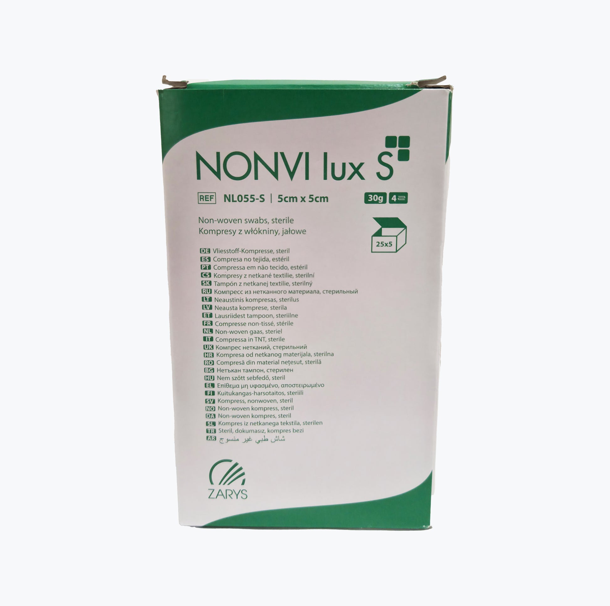 As compressas NONVI lux S da marca ZARYS são fabricadas em tecido não tecido (TNT), oferecendo excelente absorção e suavidade para cuidados médicos. Esterilizadas e prontas para uso, são indicadas para procedimentos que exigem higiene rigorosa e contato delicado com a pele ou feridas.